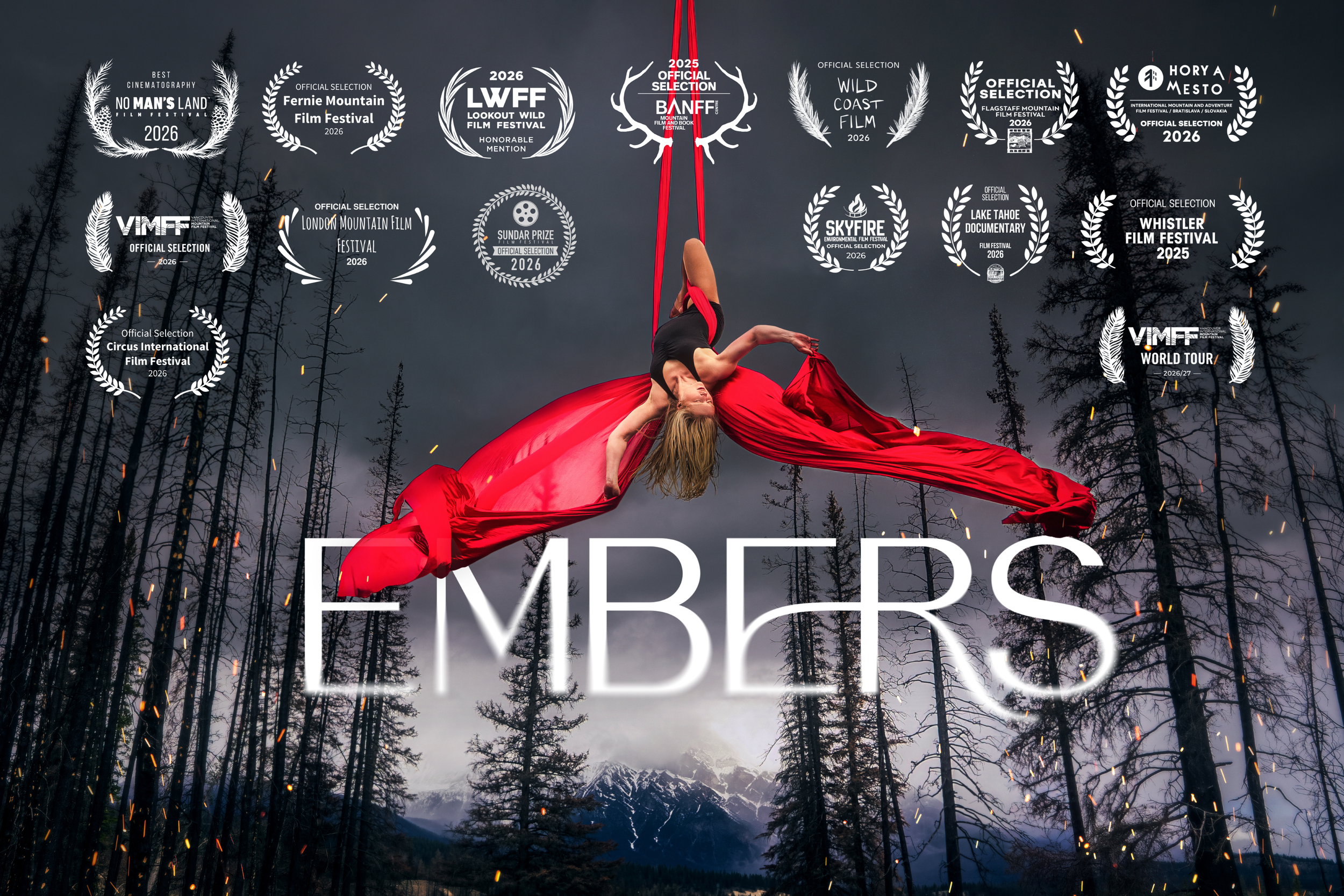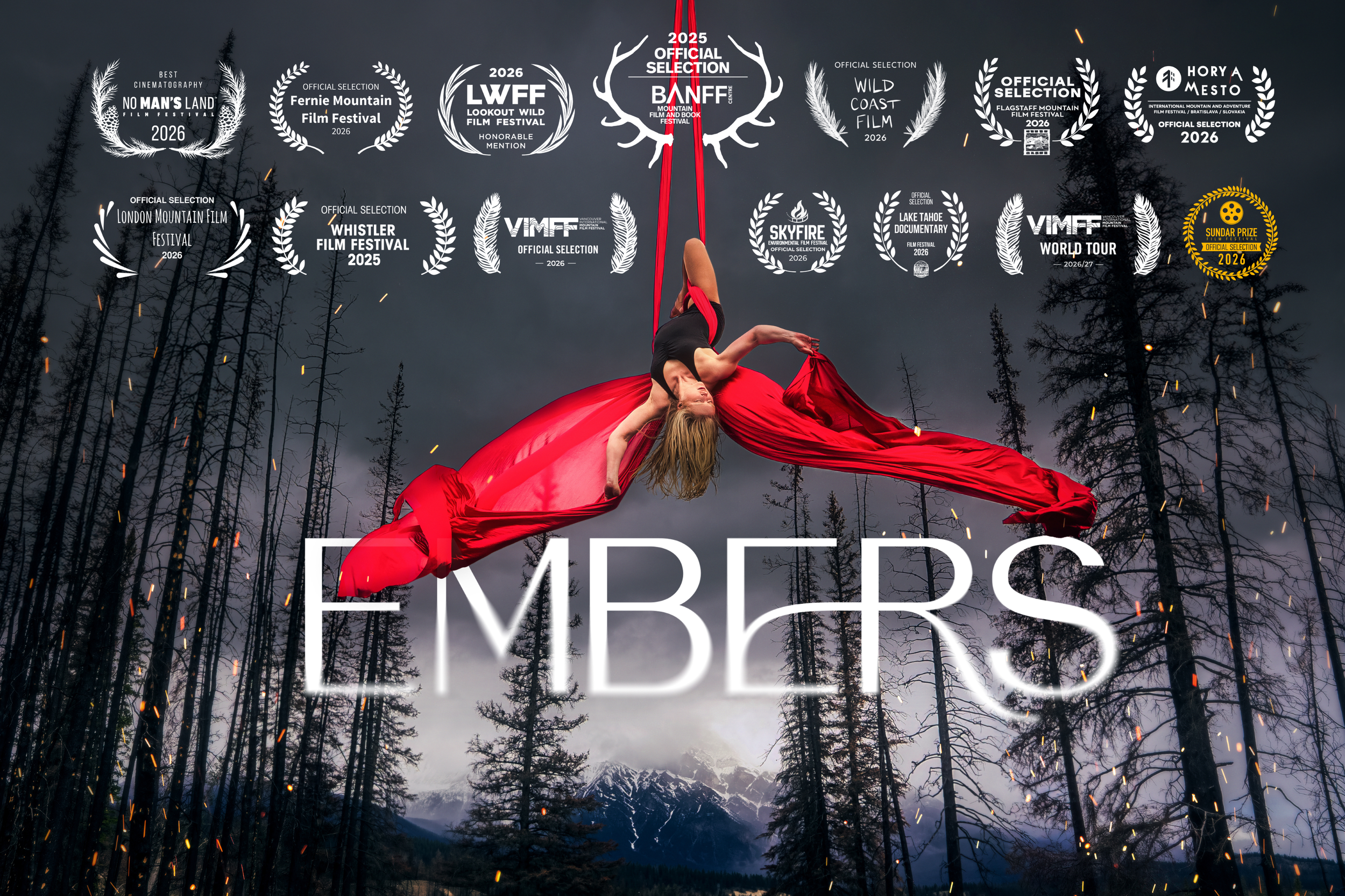After losing her home in the 2024 Jasper wildfire, aerial artist Sasha Galitzki is forced to reckon with catastrophic changes to her mountain home. Short documentary film Embers connects Sasha's loss in the wildfire and the glacial recession she has witnessed in her creative work to highlight their common root: climate change.